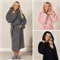 Teddy Fleece Long Dressing Gown Ladies Warm House Coat Hooded Long Cosy Robe